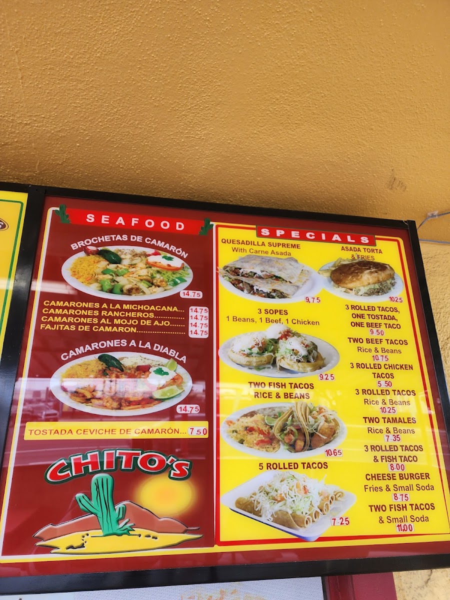 Indulge in the vibrant flavors of Mexico at Chito's Mexican Food! Join us for a culinary adventure where every dish is crafted with passion and authenticity. Whether you're craving spicy tacos or savory enchiladas, your taste buds are in for a treat. Come experience the warmth and joy of our cuisine—your table awaits!